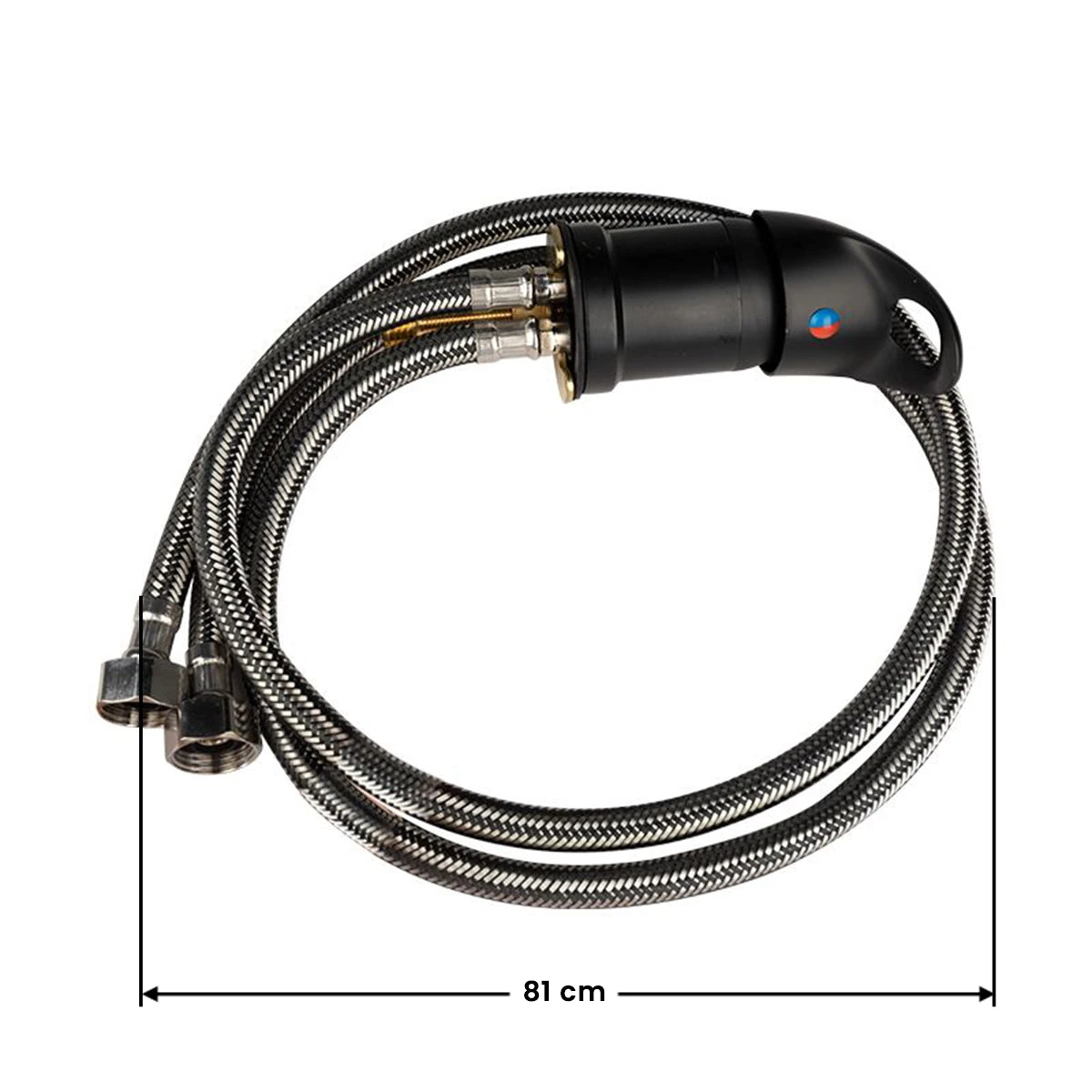Mixer battery suitable for most of the hairdressing washes available in Poland. Brass faucet, black finish with high resistance. Connection hoses secured with a steel braid, which guarantees durability.