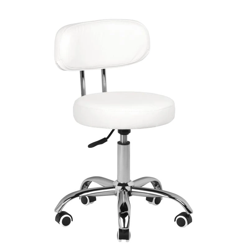 Cosmetic Stool for Pedicure A-007 White is the perfect addition to any salon or beauty space. Made of comfortable ecological leather, this stool is designed for ultimate relaxation during pedicure treatments. The stable structure is set on a five-star base with rubberized wheels, ensuring easy mobility around your workspace. Its sleek white color adds a touch of elegance to any setting.