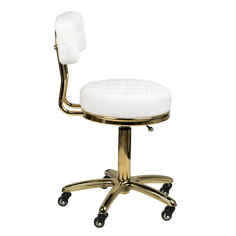 Find your ultimate glam companion in the ActiveShop Cosmetic Stool Gold AM-961 White. Its unique quilted seat, backrest and ergonomic design give maximum comfort and make your beauty rituals even more enjoyable.