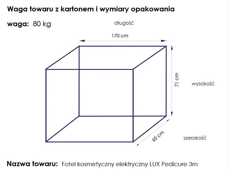- Gross weight (with box): 80 kg; package dimensions: 170 x 65 x 71 cm.