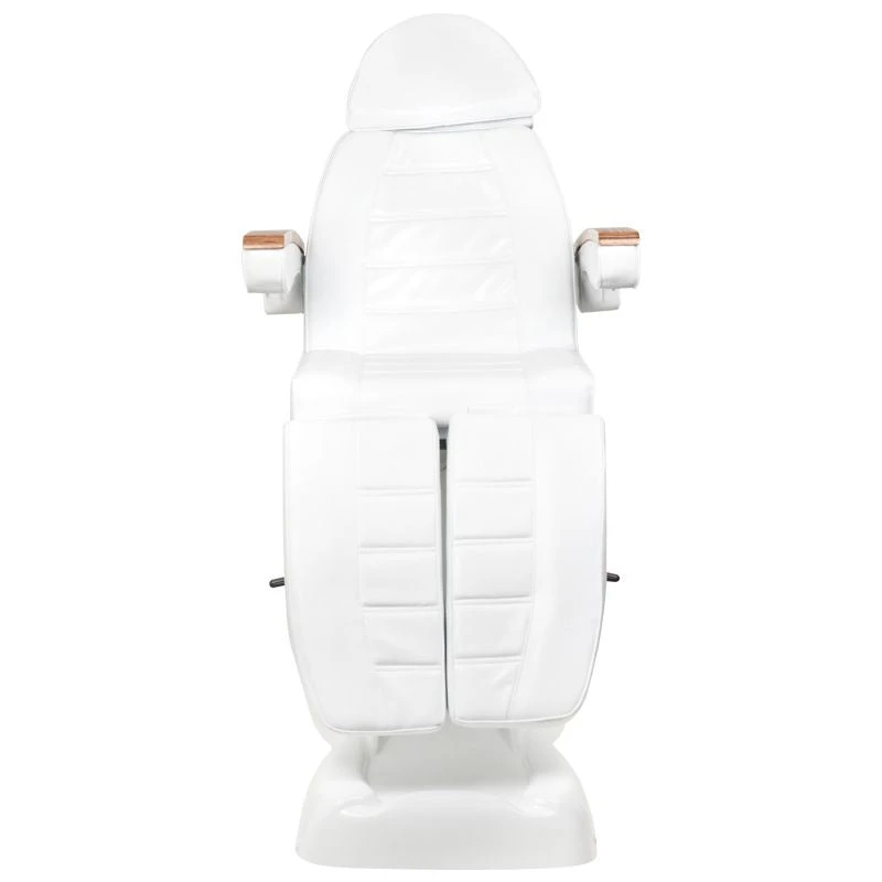 Featuring a sleek and modern design, this cosmetic chair is covered with an easily washable eco-leather seat that meets strict EU requirements. The armrests are elegantly finished with wood and can be easily removed if needed. The chair also includes a massage-friendly headrest with a hole for added comfort and relaxation. Available in stunning white colour, this chair includes all the necessary components, including the seat with base, two armrests, headrest, and remote control, as well as a warranty for peace of mind.