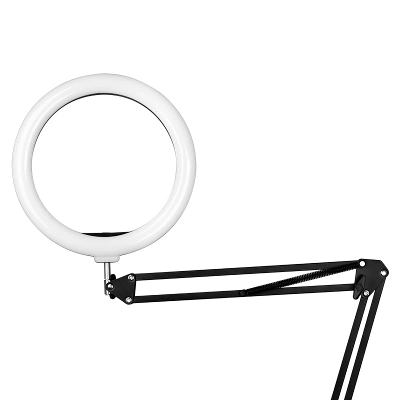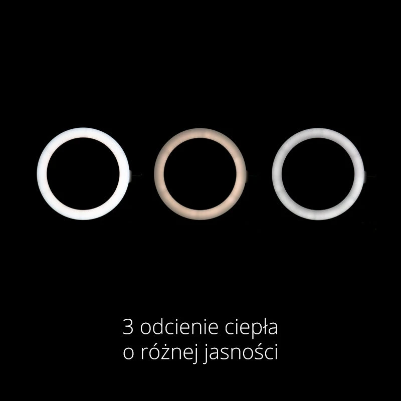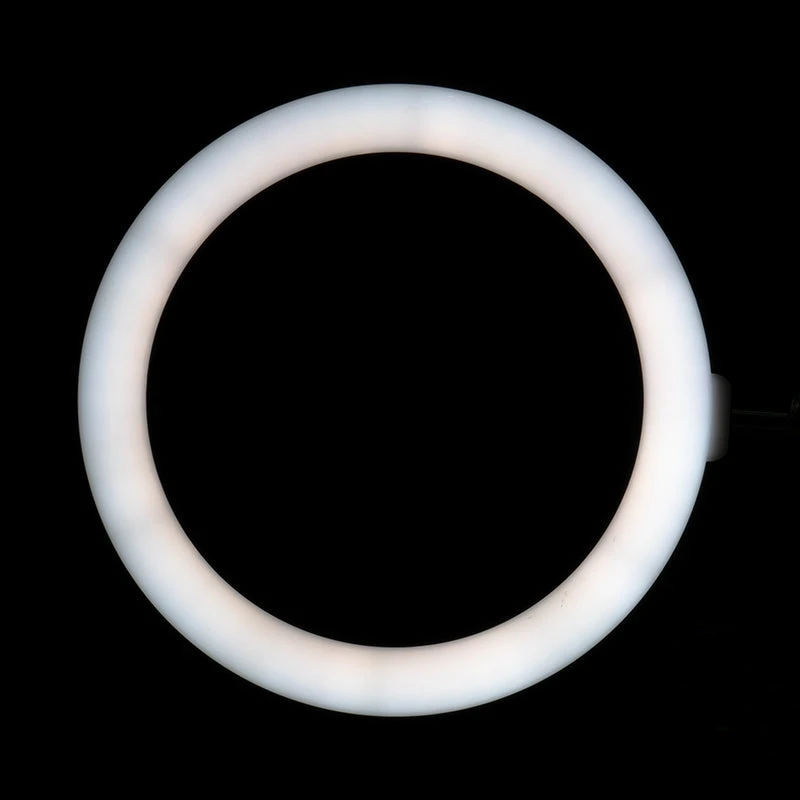 This LED ring light has a wide range of colour temperature regulation. It provides long-lasting, hassle-free operation with excellent colour reproduction. The easy installation of the practical arm also ensures comfortable work. Plus, the shape of the circle makes sure that the photographed object is even, completely illuminated. This lamp is powered from the USB port. The following specifications highlight its efficiency: