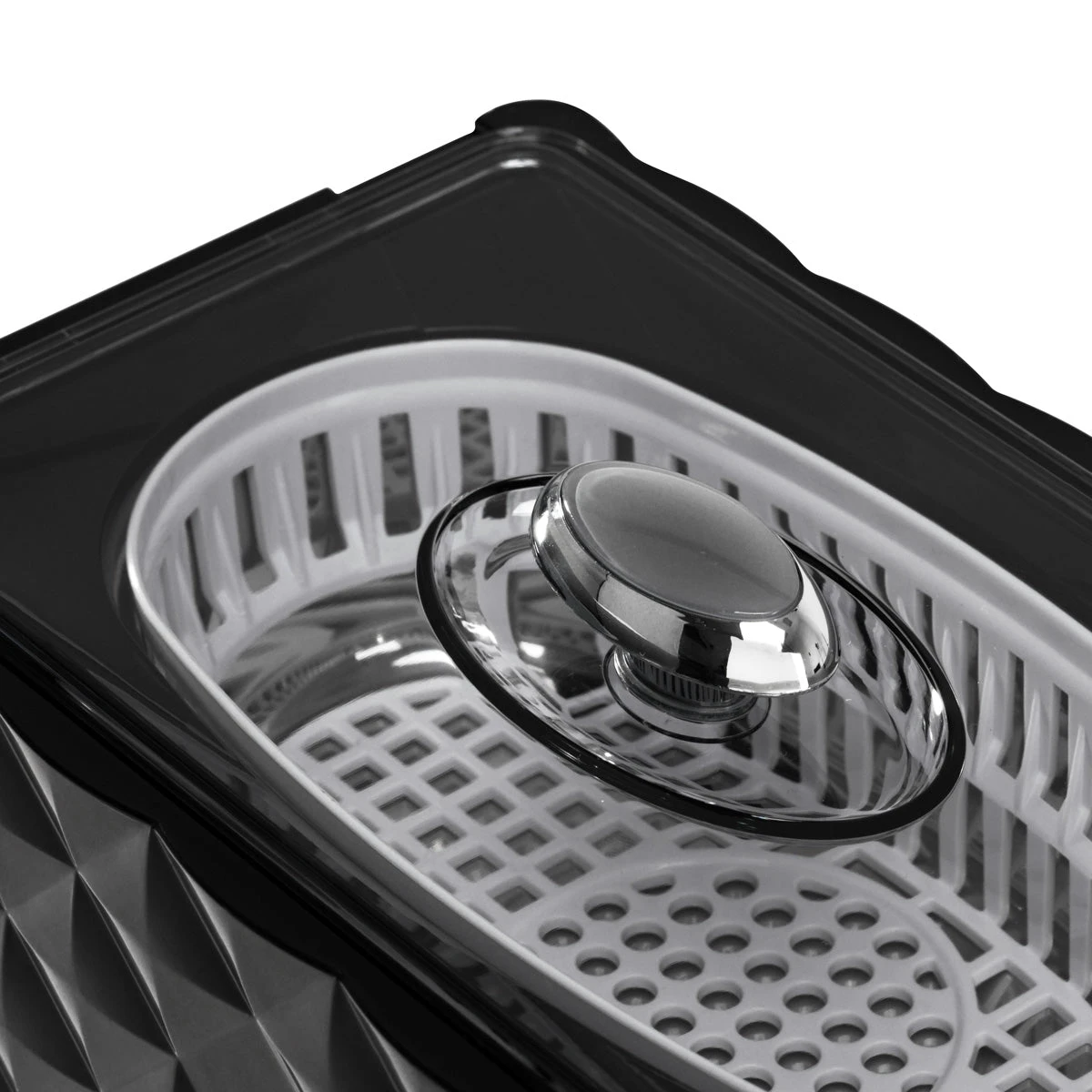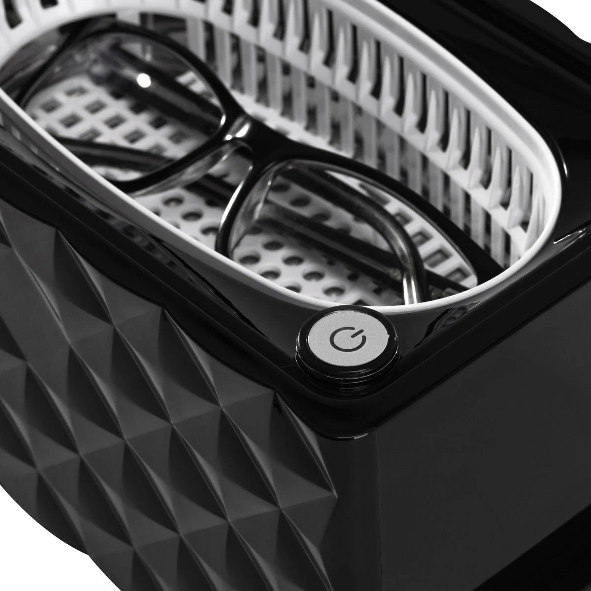 The small dimensions make this ultrasonic cleaner very easy to transport, and additionally it does not take up too much space in the salon. The aesthetically pleasing, decorated housing is made of plastic in shades of black, and the transparent lid allows you to observe the process on an ongoing basis and does not make it difficult to turn on the device, even though the summary is hidden under it. The inside of the container is marked with a maximum liquid fill mark (up to 300 ml). The stability of the device is ensured by non-slip feet.