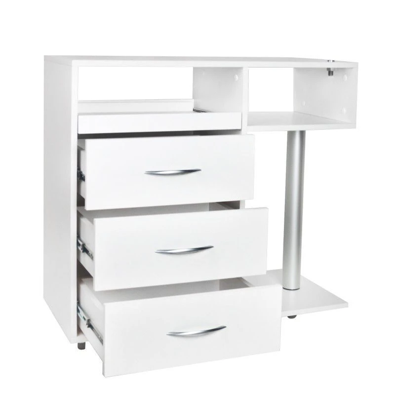The solid podiatry unit Y-300 is designed to facilitate the work of the practitioner. Three capacious drawers will accommodate all necessary accessories, tools and products. A significant advantage is a pull-out shelf, where you can place devices necessary in the work of a podiatrist, such as a sterilizer or a drill machine. It will also be an excellent place for utensils or preparations, which are worth having constantly at hand. The furniture is equipped with wheels, which improves the work and its relocation. They allow you to easily transport it between rooms. The TUBE holder allows you to attach the lamp directly to the tabletop anywhere. The helper is made of durable materials, easy to clean and will significantly improve the performance of specialized services.