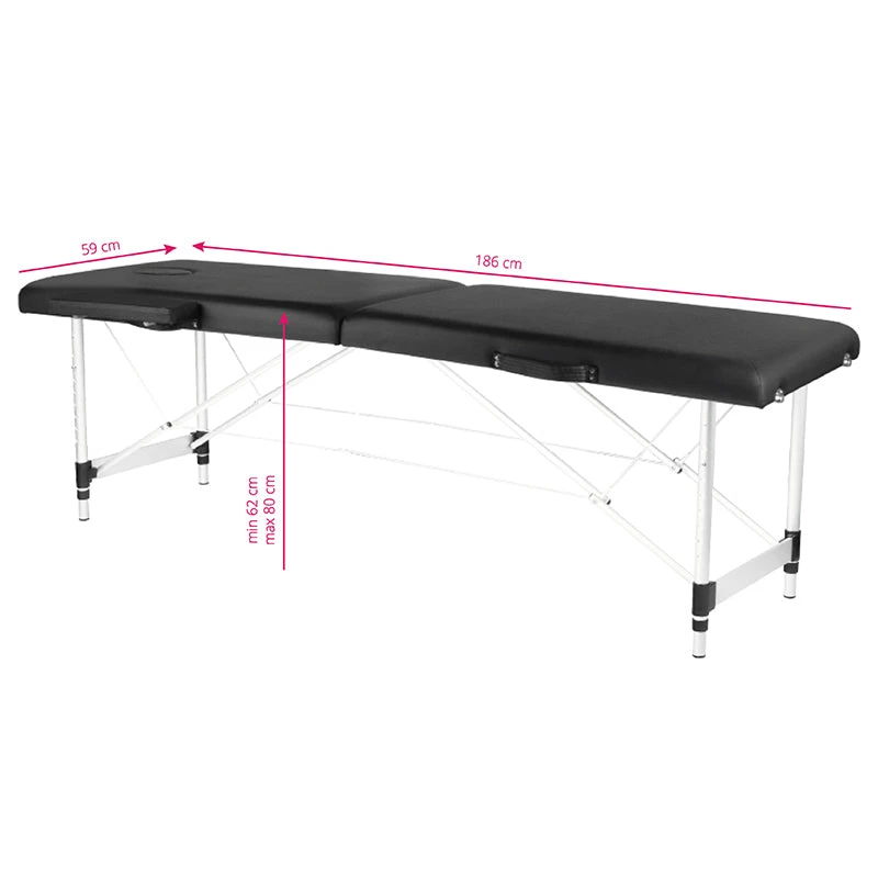 Whether working in a clinic or at a client’s home, this massage table ensures you deliver top-notch service with ease. Benefit from its adjustable height feature, catering to therapists of varying heights and different treatment techniques. The table’s design is not only practical but also enhances the aesthetic appeal of any treatment room with its sleek black and silver finish. This product truly answers the call for a reliable, transportable, and stylish massage solution.