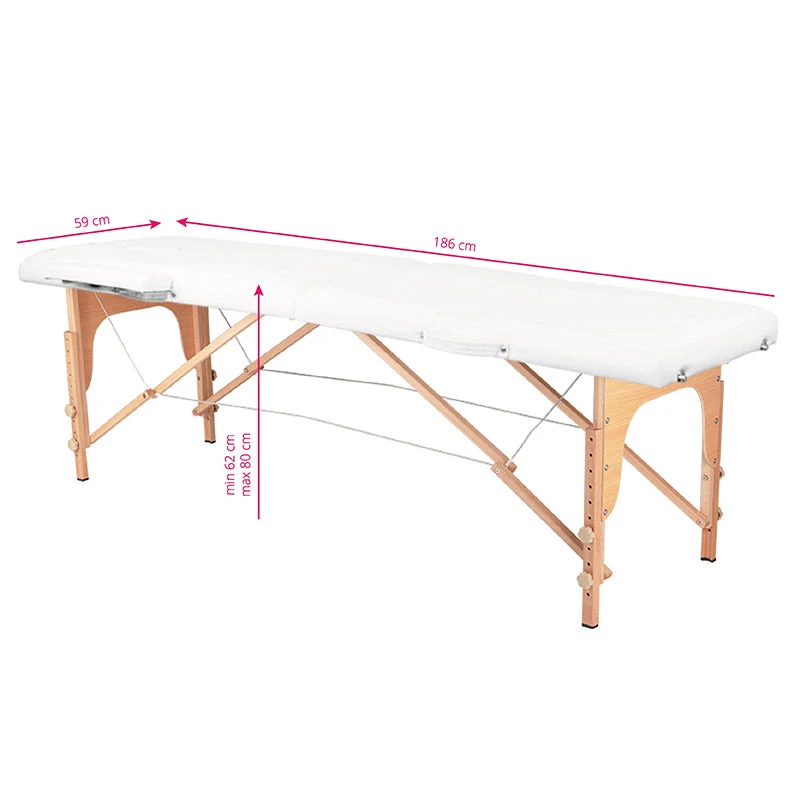 The adjustable folding massage table features a functional lightweight wooden structure, providing both stability and elegance. The lounger is crafted from a thick sponge covered with high-quality eco-leather, ensuring superior comfort and durability.