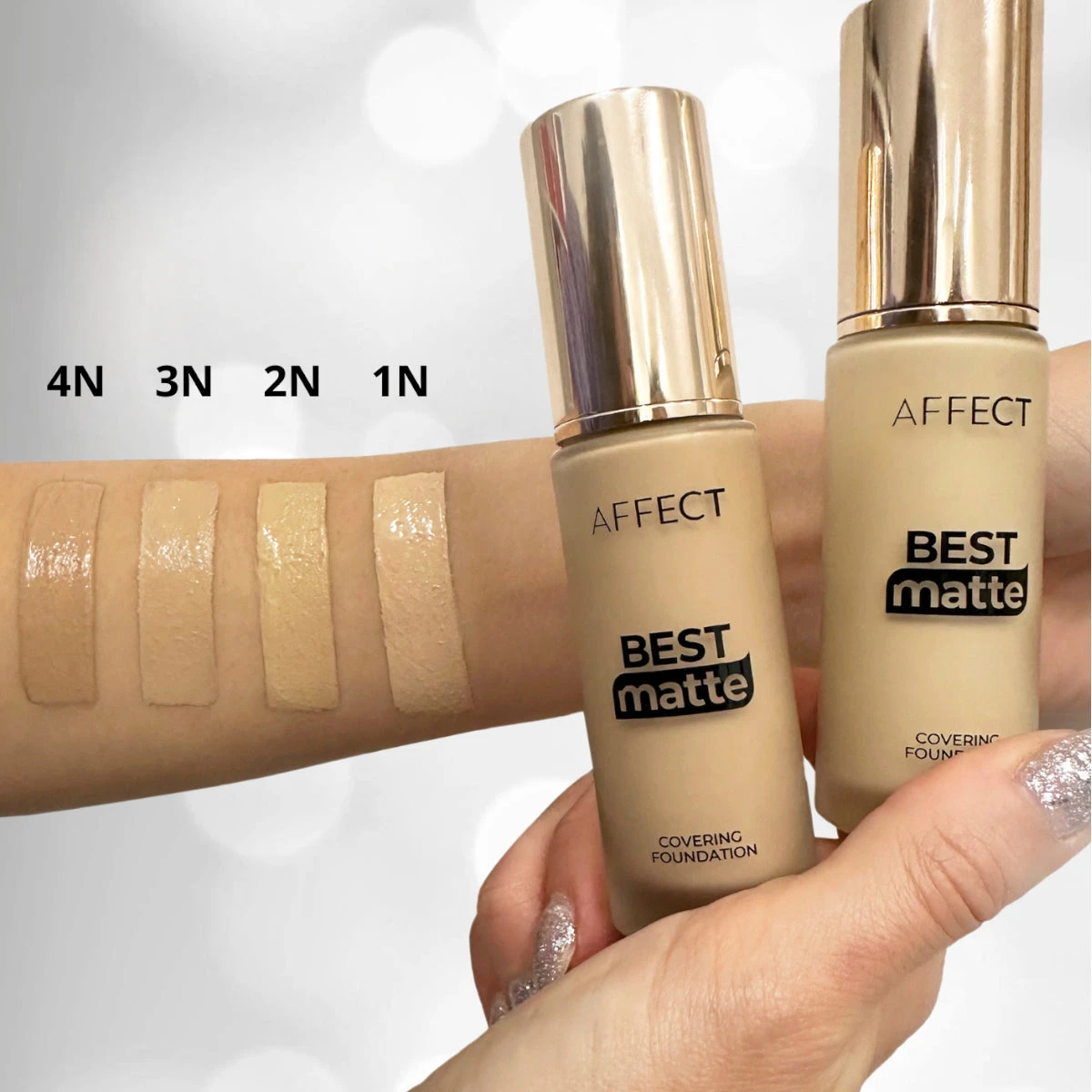 Achieve a flawless matte complexion with the Affect Best Matte Covering Foundation Velvet Finish. This innovative foundation delivers impeccable coverage while maintaining a natural, velvety finish, ideal for those seeking a fresh and lightweight appearance. Its oil-free formula effortlessly evens skin tone, conceals imperfections, and reduces shine, providing up to 12 hours of long-lasting matte finish without leaving your skin dry or with an unwanted mask-like effect. Enriched with niacinamide, vitamin E, and grapefruit extract, it not only enhances the appearance of your skin but also supports its health by addressing common skin concerns and ensuring optimal hydration and nourishment.