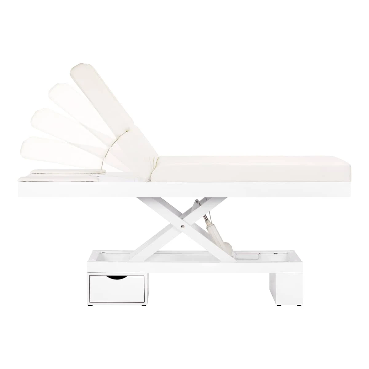The Azzurro Spa Cosmetic Couch 815B White is the epitome of luxury and functionality, designed to meet the highest standards in beauty and wellness environments. This innovative beauty bed is a standout choice among couches, offering electric height adjustment that spans an impressive range from 58 to 85 cm. This feature ensures adaptability to various treatments and client preferences, enhancing both comfort and accessibility for users. The backrest is also easily adjustable via remote control, allowing transition from horizontal to almost vertical, rising to a full 80 degrees for optimal versatility during treatments.