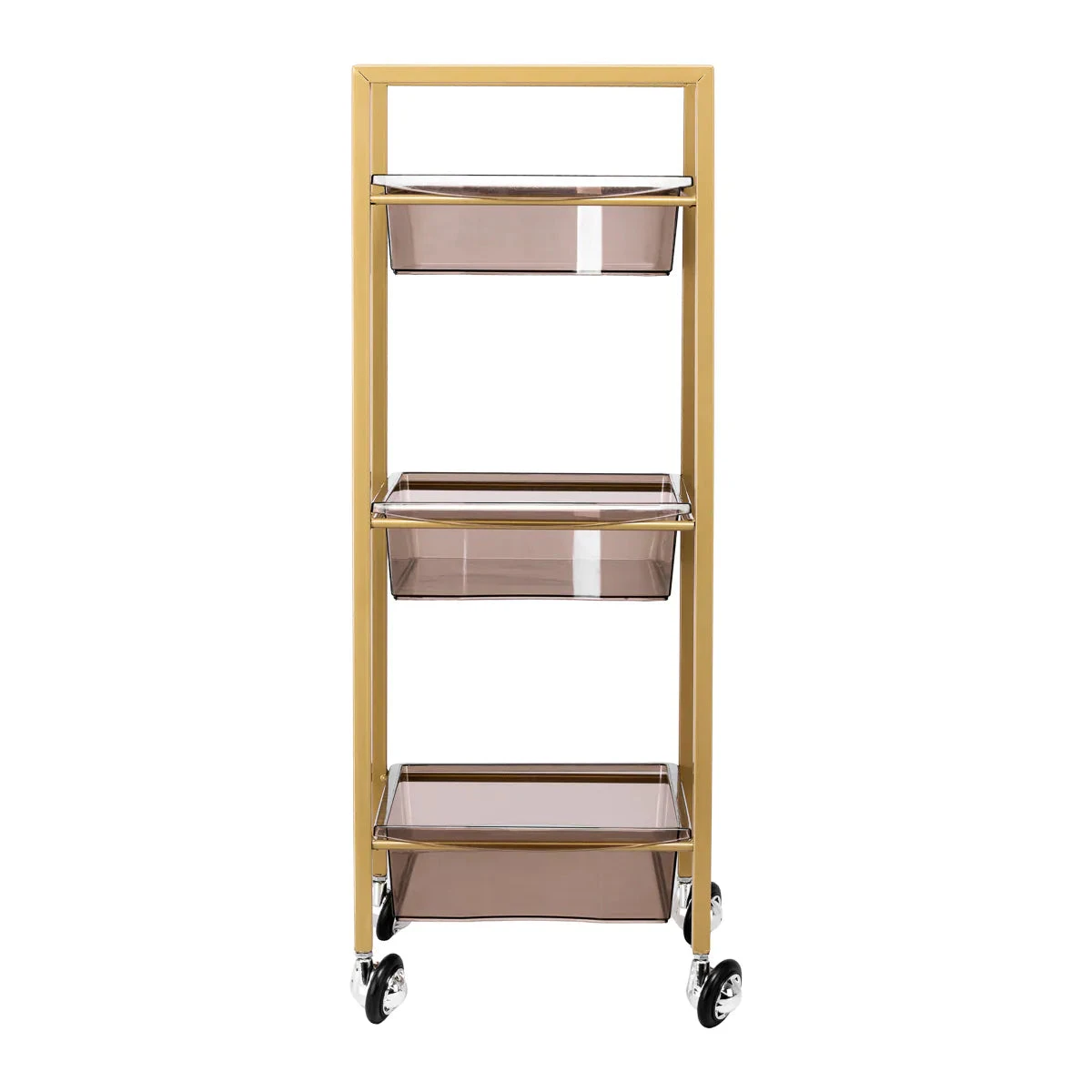 The Helper 93 is an elegant and functional piece of equipment that improves work in hairdressing and beauty salons. Three capacious trays made of durable plastic facilitate the organisation of products and tools, and their smooth surface ensures easy cleaning. The mobility of the furniture is guaranteed by wheels that allow it to be moved freely. The metal frame in the shade of old gold gives it a unique character, perfectly fitting into elegant interior design.