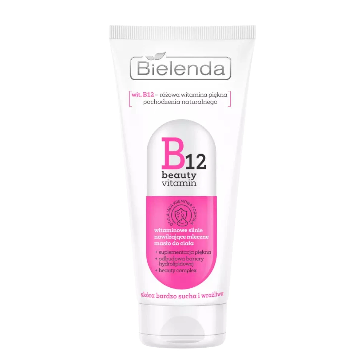 Strongly moisturizing vitamin body butter from the B12 Beauty Vitamin series is a product with a rich consistency for daily body care, especially for dry and sensitive skin. Milk butter is perfectly absorbed, strongly moisturizes and smoothes the skin. It eliminates the unpleasant feeling of chapping and tightness, regenerates, restores the skin’s beautiful appearance and supports the protection of its microbiome.