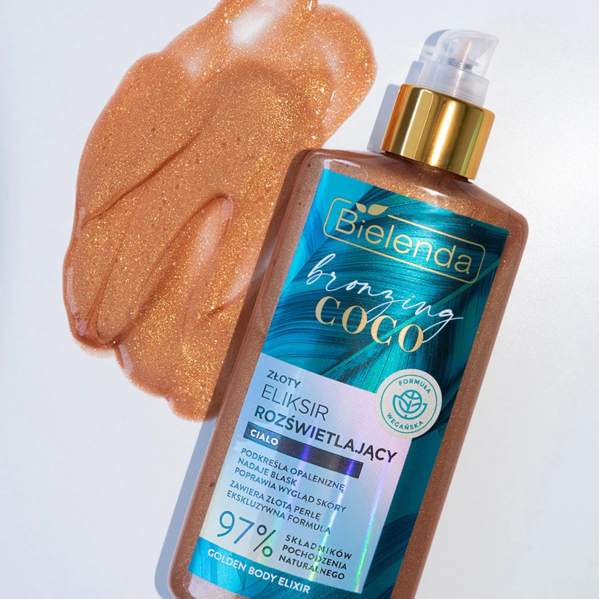 Say goodbye to dull, lacklustre skin! Bielenda Bronzing Coco Gold Illuminating Body Elixir is a must-have for anyone looking for a luminous and radiant finish and improved skin appearance. This multi-functional formula combines the nourishing properties of coconut water with the hydrating ingredients betaine and trehalose to give you a beautiful, glowing tan. Its natural coconut scent will linger on your skin for hours, making this elixir perfect for any occasion.