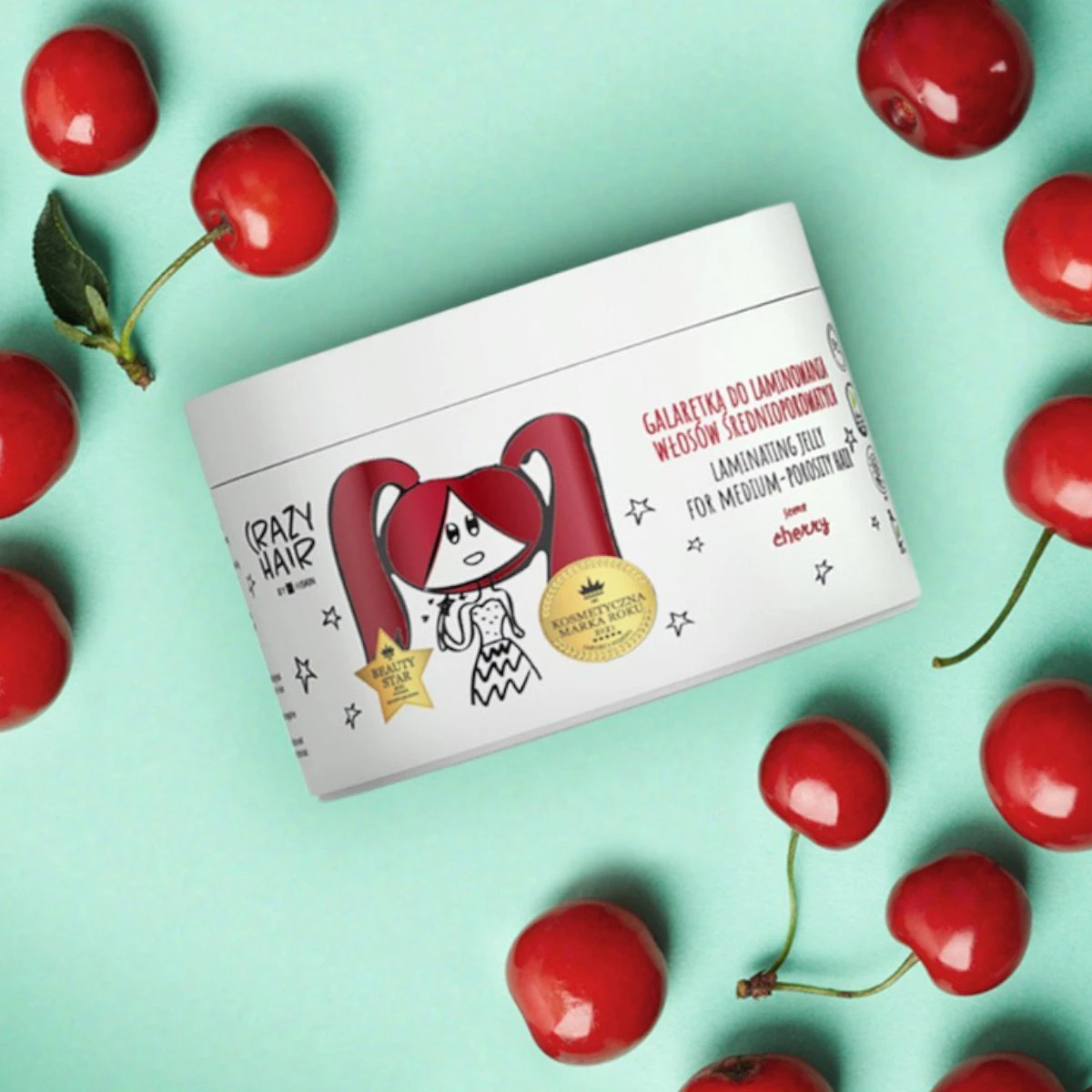 Jelly for laminating medium porosity hair from Crazy Hair is a product with a beautiful cherry scent that will cover the hair with a delicate film that will protect it from mechanical damage, moisture or too high temperature. Thanks to it, your hair will be incredibly smooth, loose and full of shine. The jelly contains emollients, humectants and proteic agents, i.e. everything your hair needs.