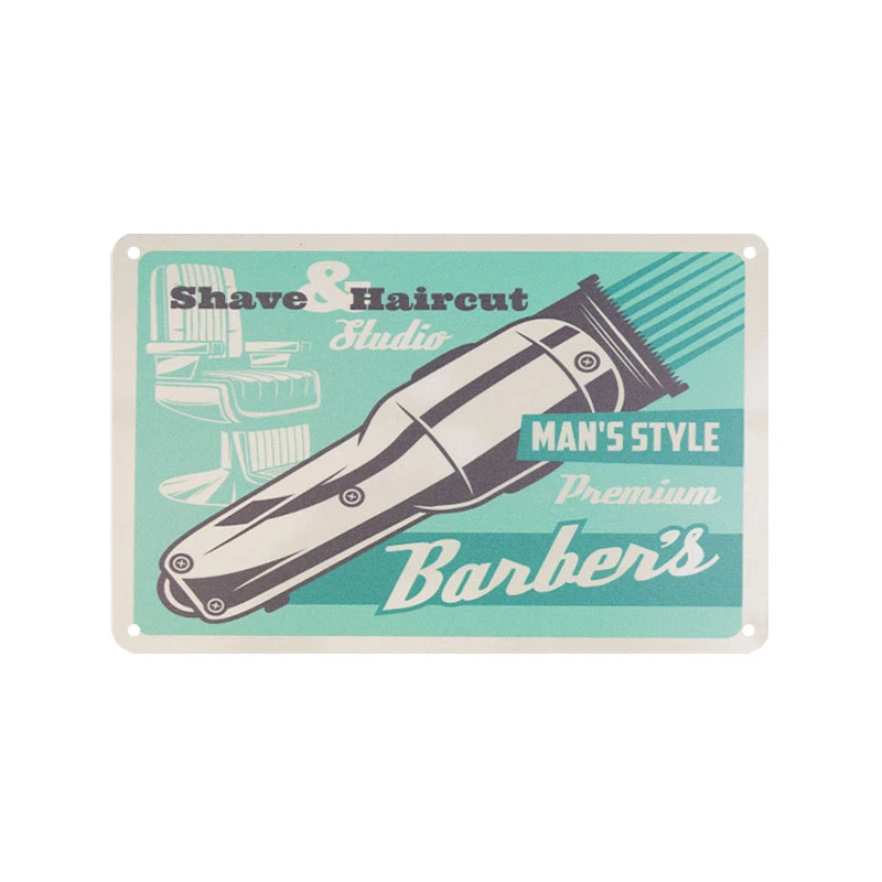 Upgrade your barber shop with our Decorative Plaque for Barber Shop B007. Crafted from a thin aluminium sheet, this plaque features eye-catching graphics applied using an advanced sublimation method for a lasting finish. The embossed inscriptions add a unique visual effect, making it a perfect decoration for loft rooms, barbershops, tattoo studios, and more.