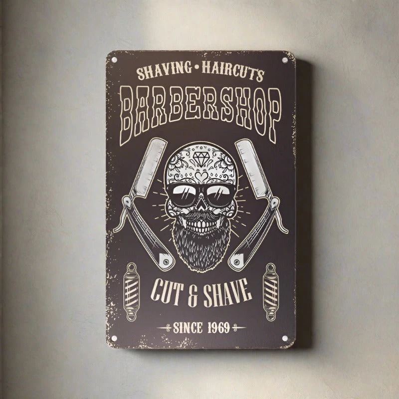 Elevate the ambience of your barber shop with our exquisite Decorative Plaque for Barber Shop B071 ‘Cut & Shave’. Crafted from a thin aluminium sheet, this plaque boasts advanced sublimation graphics, ensuring lasting colour vibrancy. The specially embossed inscriptions add a unique visual charm to this piece, making it a perfect decoration for loft rooms, barbershops, tattoo studios, and more.