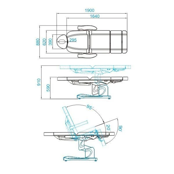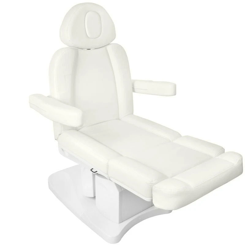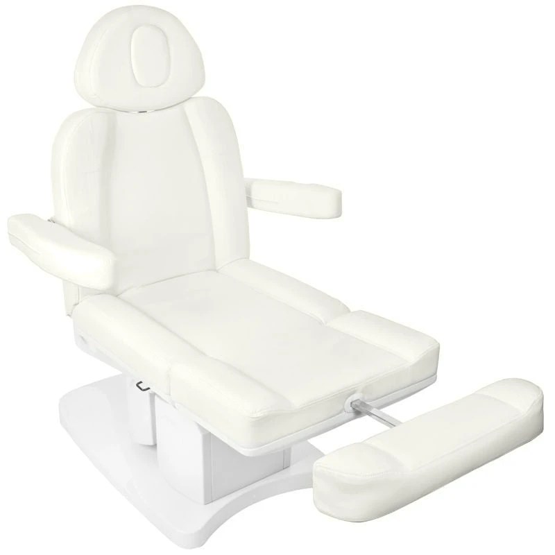 electric beauty chair, ideal for beauty salons and spas. thanks to independent motors, it allows you to adjust the chair in 4 planes by means of a remote control, making it possible to perform facial and body treatments. using the remote control, we can adjust the height of the chair, the inclination of the backrest and footrests and set the seat to the cradle position.