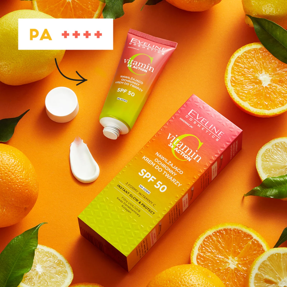 Moisturizing and protective face cream SPF50 is excellent protection against radiation. The cream has an anti-wrinkle and revitalizing effect on the skin. Perfectly moisturizes and nourishes. Active ingredients such as: 3 forms of vitamin C, tranexamic acid and collagen strengthen the natural skin barrier. They create a protective layer on the skin that effectively prevents premature ageing. The formula reduces wrinkles, moisturizes and nourishes, providing a long-lasting feeling of comfort. It has a revitalizing and smoothing effect. Additionally, the cream will give your skin energy!