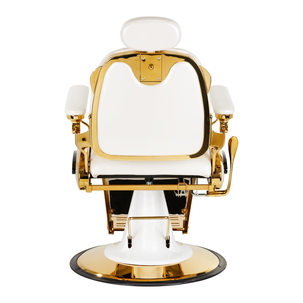 The stable construction of the base with elements in shades of white and gold ensures high comfort of use. Filling with durable, deformation-resistant foam and upholstery made of pleasant-to-touch synthetic leather with a pearl finish ensure the durability of the furniture and its comfortable use for a long time. They also make the equipment resistant to moisture, durable and easy to clean. The covering in shades of white along with original quilting and decorative summarys give it a unique character. Designer decorative elements inspired by motorcycles, referring to the vintage style, will perfectly fit the atmosphere of barbershops, creating their amazing aura.