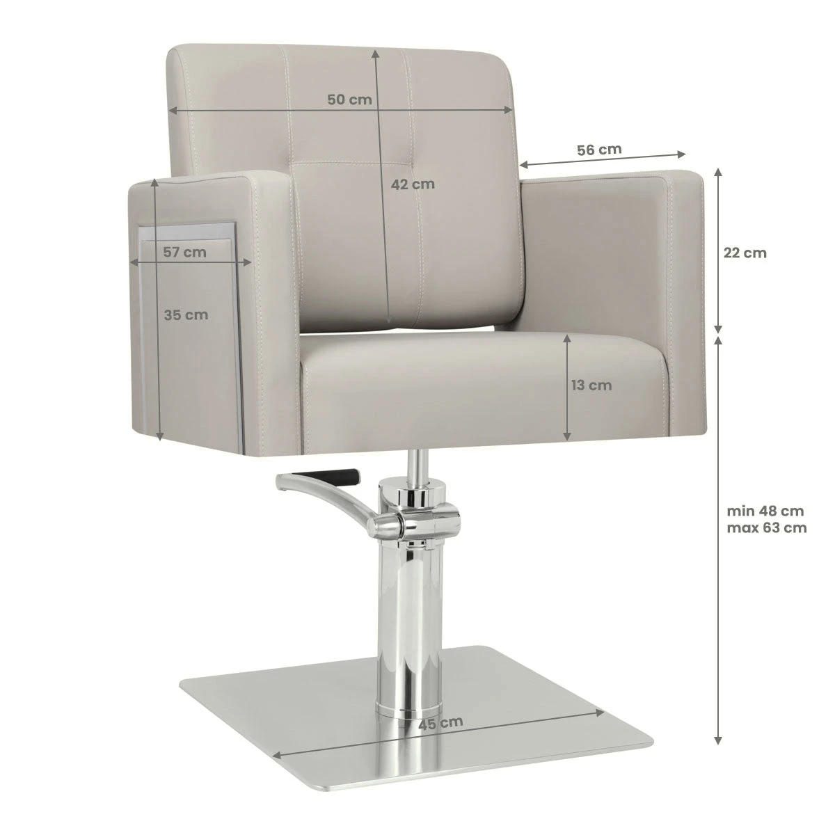 The Gabbiano Hairdressing Chair Bergamo in Beige is the epitome of style and comfort, perfect for enhancing the interiors of elegant salons. This chair is designed with a focus on comfort and functionality, featuring vertical height adjustment to suit your professional needs. Its construction is impressively stable and robust, ensuring long-term durability.
