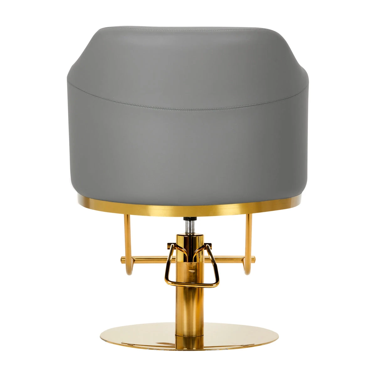 The Gabbiano Burgos hairdressing chair equipped with a hydraulic lift is a practical piece of furniture that will become an embellishment of a hairdressing salon. The classic color scheme, dedicated footrest and decorative elements in gold tones give it an elegant look. High functionality will provide comfort for both hairdressers and its users.