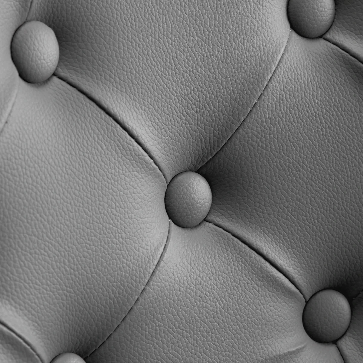 The chair is filled with foam, which is durable and does not deform, ensuring comfortable use for a long time. The upholstery is made of pleasant-to-the-touch imitation leather with a specific structure. Thanks to the use of such material, the equipment is resistant to moisture, durable and easy to clean. The covering in shades of grey and decorative elements in gold hues give it an expression of timeless elegance. It is distinguished by a tasteful finish, which gives it an exclusive character and makes it look great in many professional salons.