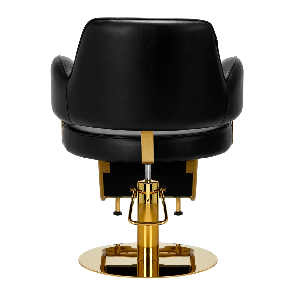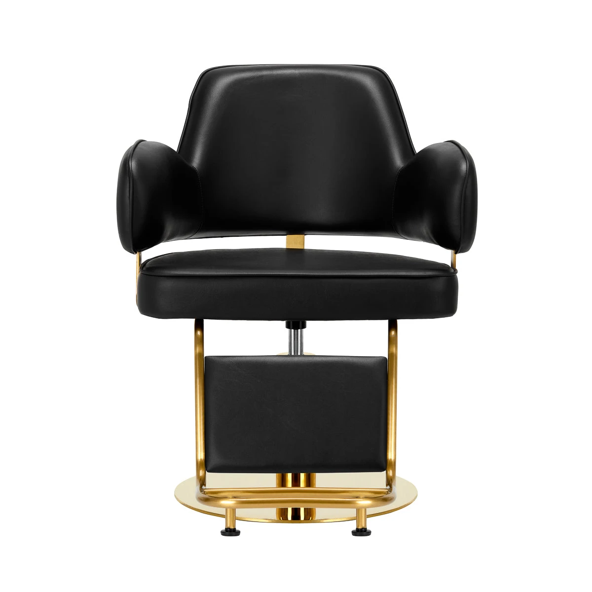 The comfortable piece of furniture is filled with durable, deformation-resistant foam, and the upholstery is made of pleasant-to-touch synthetic leather. The materials used ensure comfortable use of the furniture for a long time and make the equipment resistant to moisture, durable and easy to clean. The covering in shades of black and gold-coloured decorative elements gives it an expression of timeless elegance. The B212G hairdressing chair is distinguished by a minimalist design, which gives it a unique character and makes the chair look great in many elegant salons.