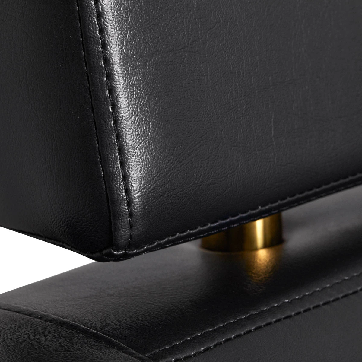 The chair is filled with foam, which is durable and does not deform, ensuring comfortable use for a long time. The upholstery is made of pleasant-to-the-touch imitation leather with a specific structure. Thanks to the use of such material, the equipment is resistant to moisture, durable and easy to clean. Covering in shades of black and decorative elements in colours of old gold give it an expression of timeless elegance. Its distinctive classic finish means it will look great in almost any space.