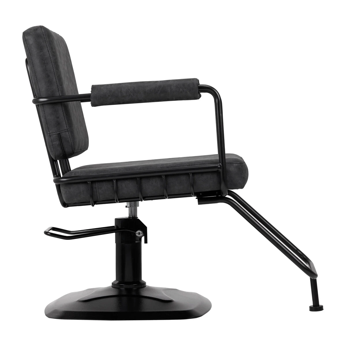 Loft-style piece of furniture is filled with durable, deformation-resistant foam, and the upholstery is made of pleasant-to-touch synthetic leather in shades of black. The materials used ensure comfortable use of the furniture for a long time and make the equipment resistant to moisture, durable and easy to clean. Metal elements in shades of black give it an expression of raw elegance. The modern Gabbiano Katania Loft hairdressing chair is distinguished by a minimalist design, which gives it a unique character and makes the chair look great in many hairdressing salons.