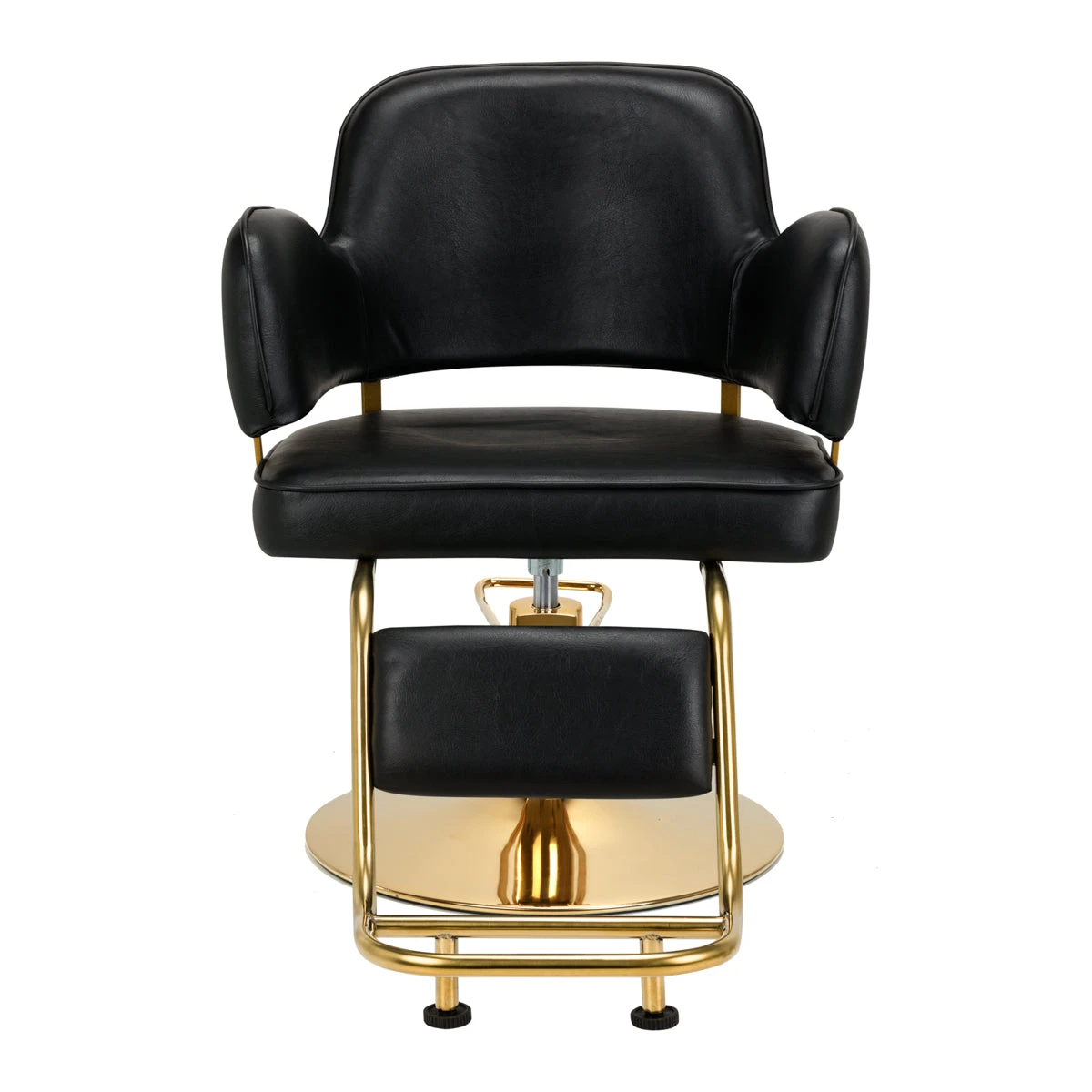 A solid, round base guarantees stability during use. The smooth surface makes this element easy to keep clean. The wide seat with foam filling ensures high comfort of use and convenience even during long hours of treatments. A significant plus is the footrest dedicated to this model, which provides stable support for the user’s feet and gives a stylish look. The armrests are at the right height, allowing for the correct positioning of the client’s shoulders – this ensures that he does not hide his head in his shoulders or slouch – clearly facilitating the precise performance of treatments, including haircuts.