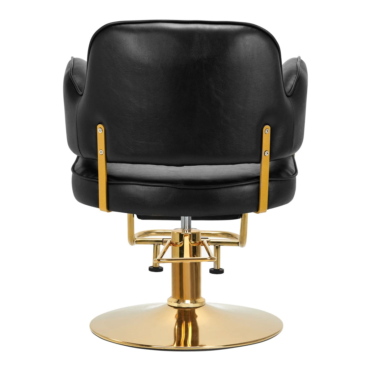 Height adjustment is possible with a durable hydraulic lift, which allows you to freely adjust the seat level within the range of 47-57 cm – even when the client is sitting on the chair. This guarantees more ergonomic work, ensuring the ability to smoothly adjust the level of the chair to the height of both the client and the hairdresser. The wide backrest with proper profiling is covered in synthetic leather and allows you to take a comfortable position. This provides excellent support for the back, which is especially important in the case of procedures lasting many hours. A big plus here is the opening between the backrest and the seat. It makes it easier to keep the salon clean, allows to easily sweep the hair out from every nook and cranny of the chair, saving the time of preparing the workstation between clients.