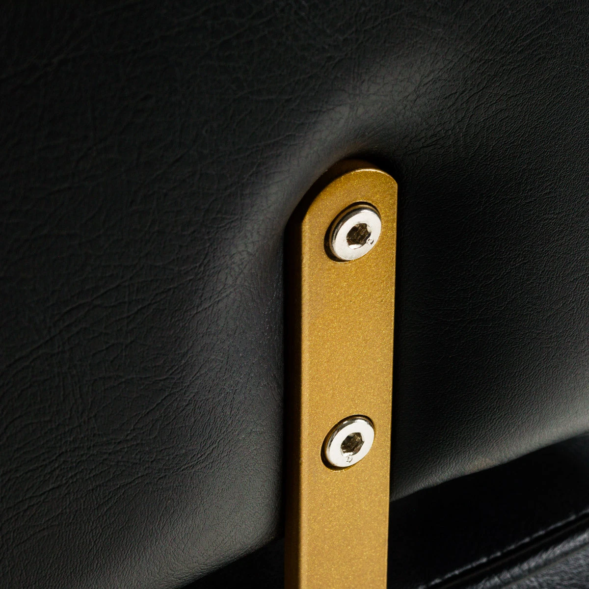 The comfortable piece of furniture is filled with durable and deformation-resistant foam, ensuring comfortable use for a long time. The upholstery is made of pleasant-to-the-touch synthetic leather. The use of such material makes the equipment resistant to moisture, durable and easy to clean. Covering in shades of black and decorative elements in gold colors give it an expression of timeless elegance. The Hair System Linz hairdressing chair is distinguished by a simple, minimalist design, which gives it a unique character and makes it look great in many professional salons.