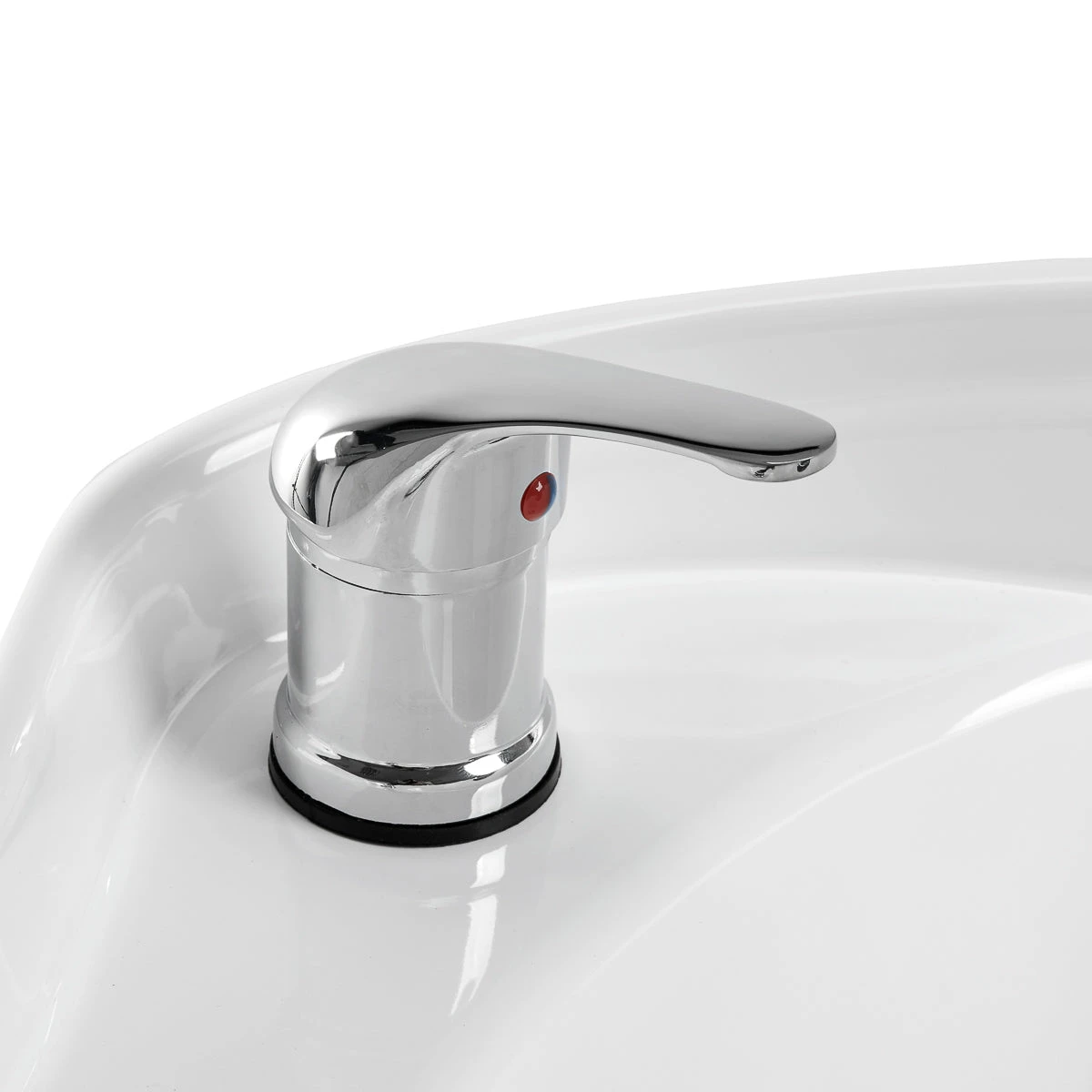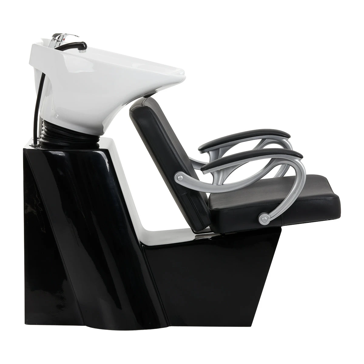 Appropriate depth of white ceramic basin bowl prevents excessive splashing of water and products used during the treatment. It enables comfortable and effective performing a wide range of services. Bowl mobility allows you to easily adjust its incline angle to individual needs. The material used makes the basin durable, resistant to discoloration and scratches, and very easy to keep clean. A properly profiled collar provides optimal support and comfort when washing the hair, and a comfortable plastic cover in shades of black makes the client will not feel the unpleasantness of the cold ceramic surface.