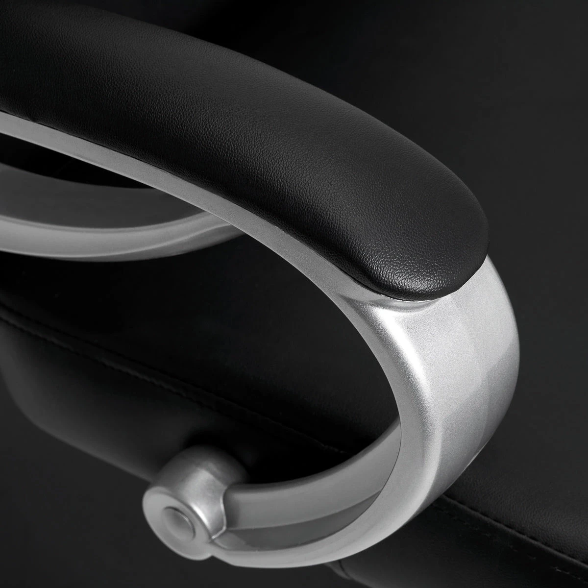 A properly profiled chair filled with durable foam ensures high comfort of use and interestingly curved, partially upholstered armrests allow for the correct positioning of the client’s shoulders and are a visually attractive element. Comfortable backrest allows you to take the right position and ensures back support. The black covering and decorative gold-lacquered metal surfaces give it a timeless elegance and additionally guarantee long-term durability and ease of cleaning. The original appearance of the hairdressing wash unit gives the interior a unique expression. The set includes complete fittings, including a faucet, a shower head and dedicated hoses to provide a complete set of tools for work.