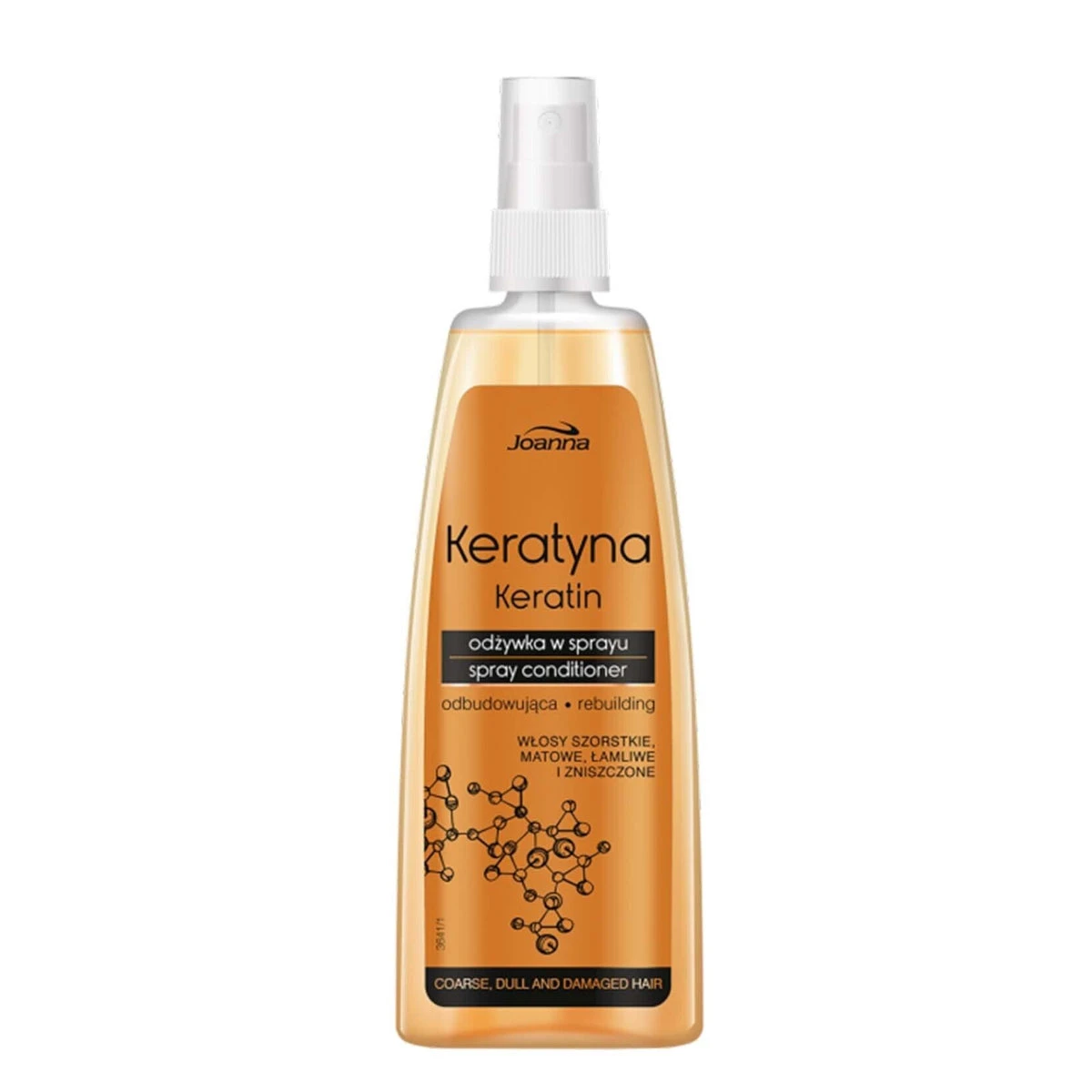 Restore life to dull, brittle and damaged hair with Joanna Keratin Hair Spray Conditioner. Formulated with an innovative keratin complex, this conditioner penetrates deep into the hair shaft to repair and rebuild depleted areas. It expertly protects the hair from daily mechanical damage, resulting in stronger and shinier hair.