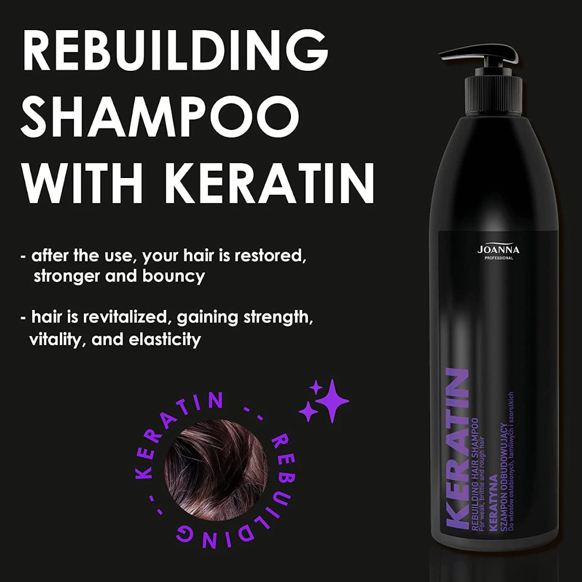 The Joanna Professional Keratin Rebuilding Hair Shampoo is specially formulated for hair weakened by hairdressing treatments. It helps restore elasticity and shine while reducing friction, making it easier to detangle and style. This shampoo is perfect for those with coarse, brittle or difficult-to-manage hair, leaving it looking and feeling healthier.