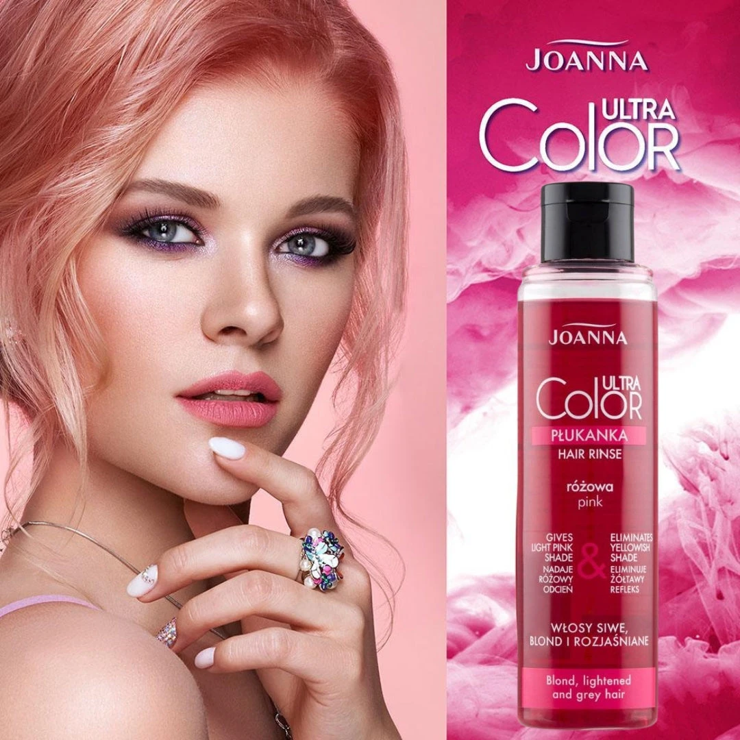 Pink rinse will ensure the expressiveness of your hair shade It will eliminate the yellow reflection of grey, blonde and bleached hair, giving them a subtle pink shade. The hair is full of shine, nourished and healthy.