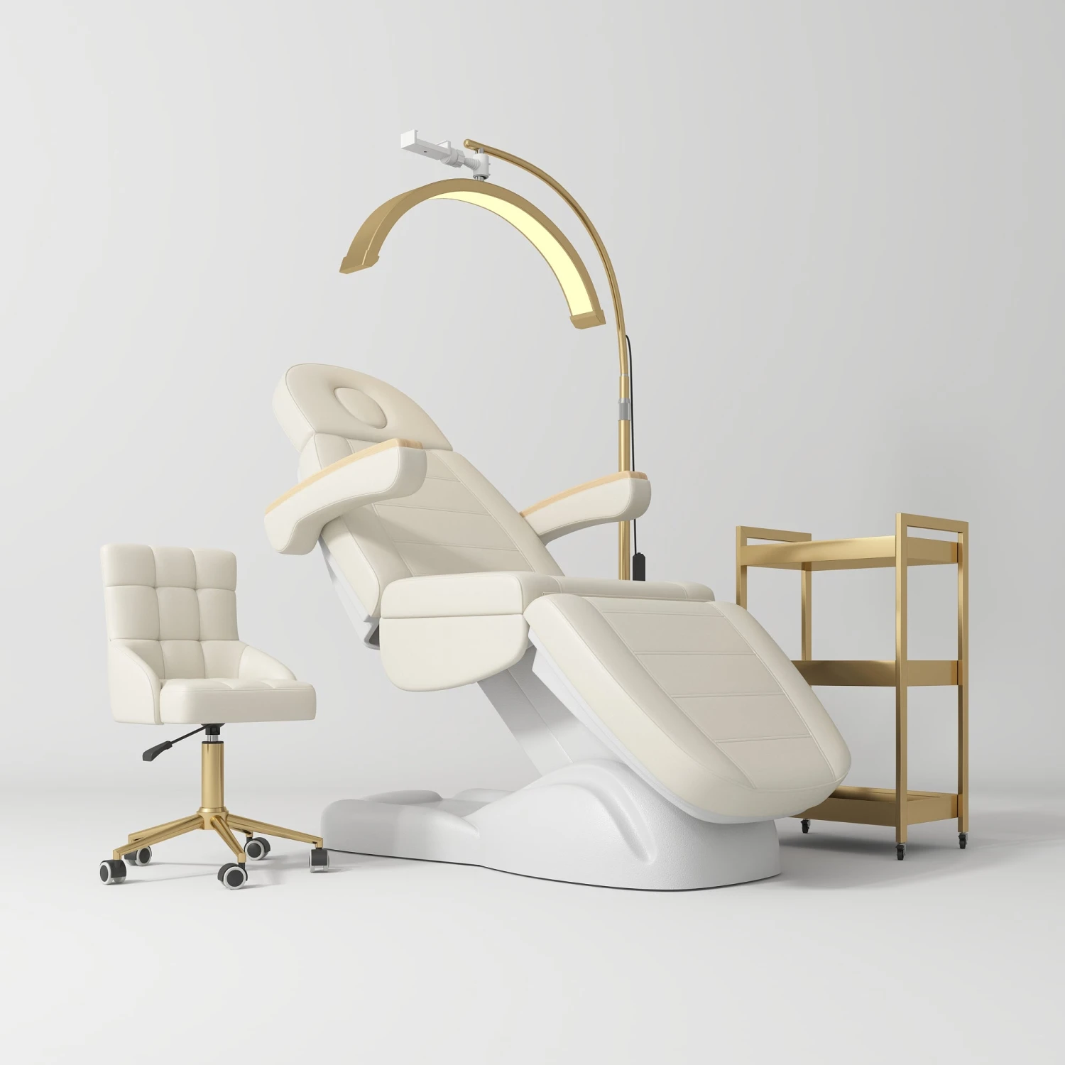 Enhance your salon’s appeal and functionality with the Manufakturo Grace Creamy Complete Salon Set. This meticulously curated set includes the versatile Electric Beauty Bed, the sophisticated Noblesse Beauty Chair, the advanced Beauty Lash LED Moonlight, and the sleek Beauty Trolley Assistant. Each item is designed to meet the demands of modern beauty and wellness professionals, offering a blend of style, comfort, and practicality. Whether you’re conducting facials, massages, or simply looking to impress your clients with a chic environment, this salon set provides everything you need for a comprehensive solution.