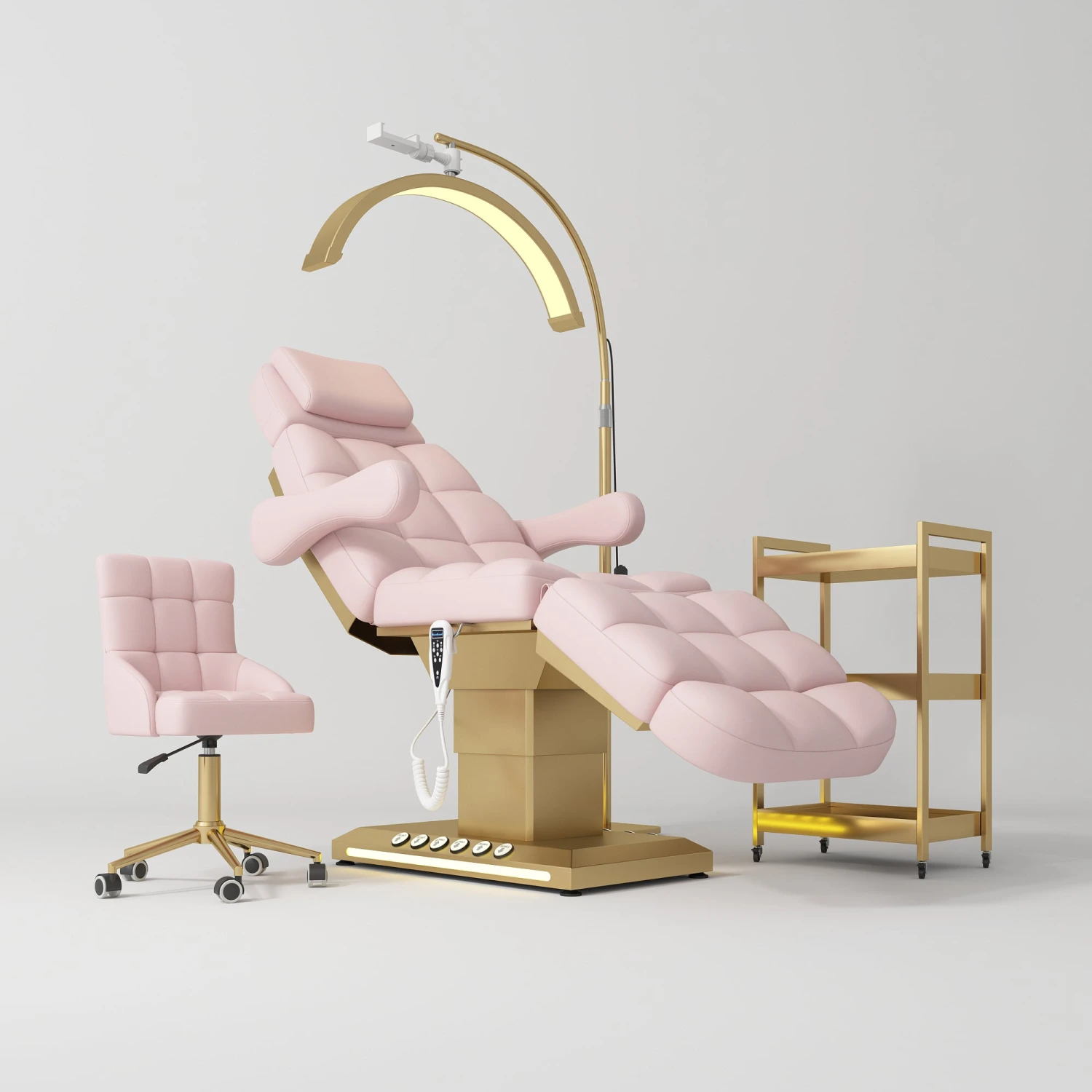 - Manufakturo Orielle version B Electric Beauty Bed: Upholstered in faux leather with high-density memory foam, three electric motors for versatile adjustments, and user-friendly controls.