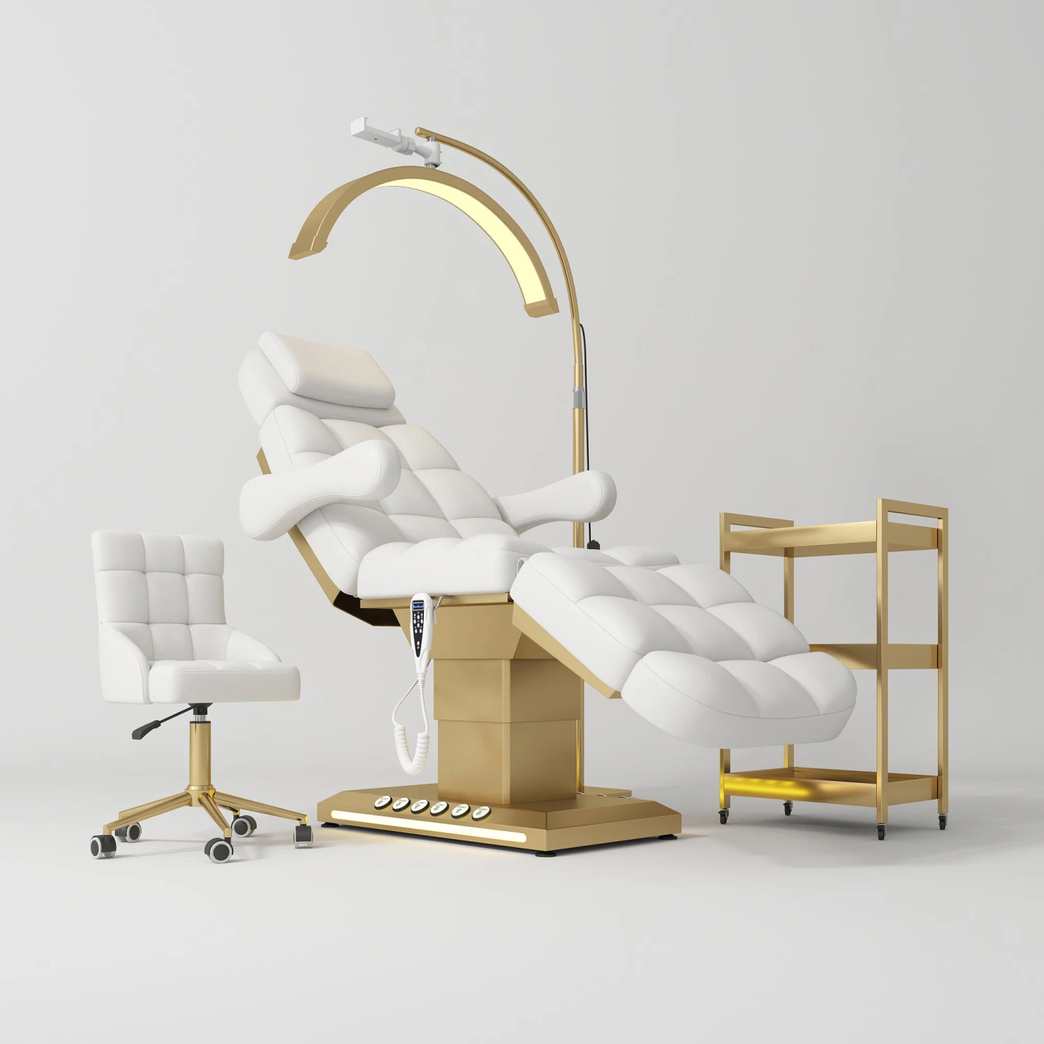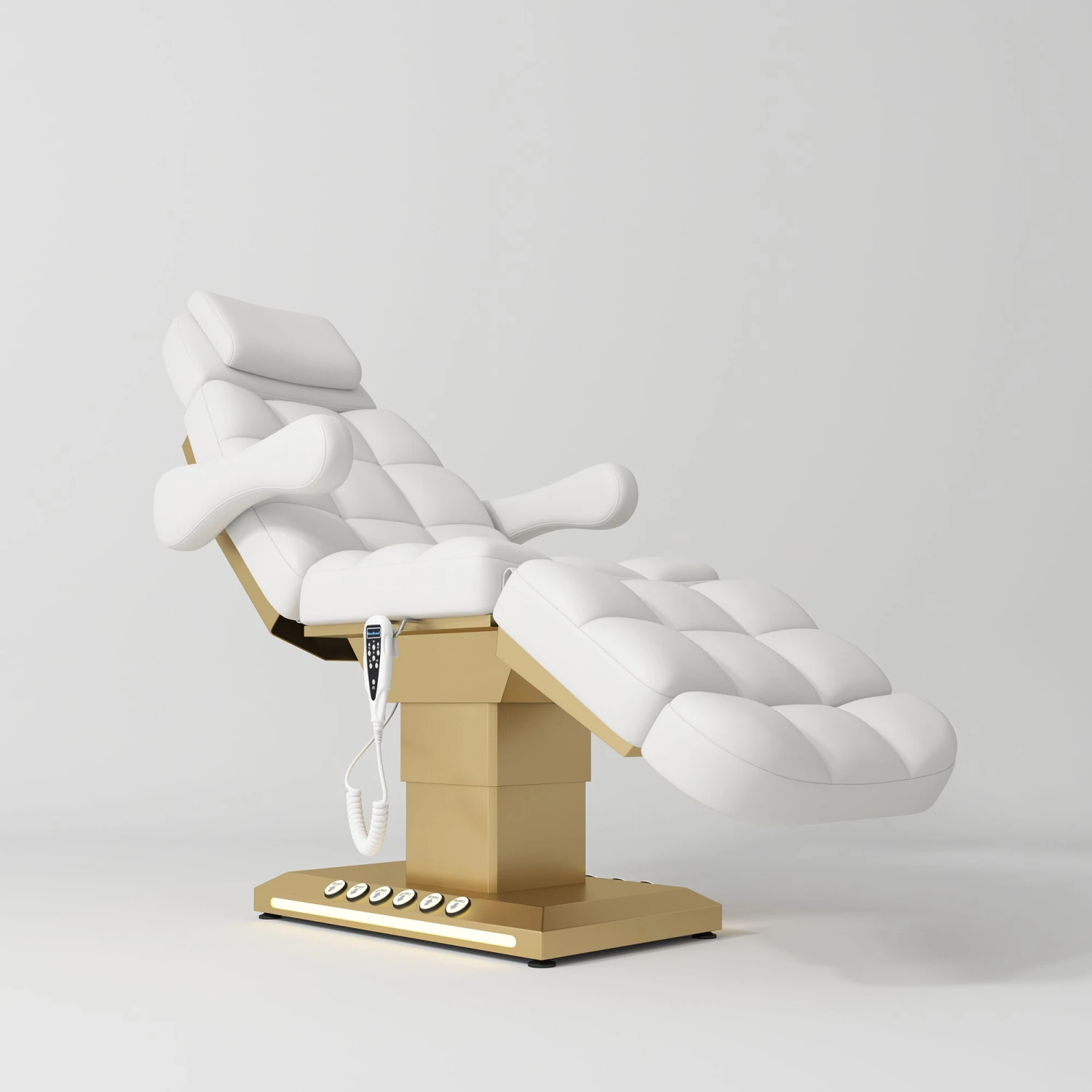 - Manufakturo Orielle version B Electric Beauty Bed: Upholstered in faux leather with high-density memory foam, three electric motors for versatile adjustments, and user-friendly controls.