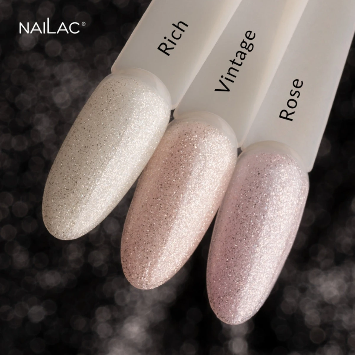 Rubber Base Rich is enough to protect with any selected NaiLac hybrid top to create a durable, elegant manicure and enjoy strong nails resistant to mechanical damage. The milky white base is perfect for everyday use, but feel free to add it to bold, party outfits so that the silver particles shine spectacularly under the flash.
