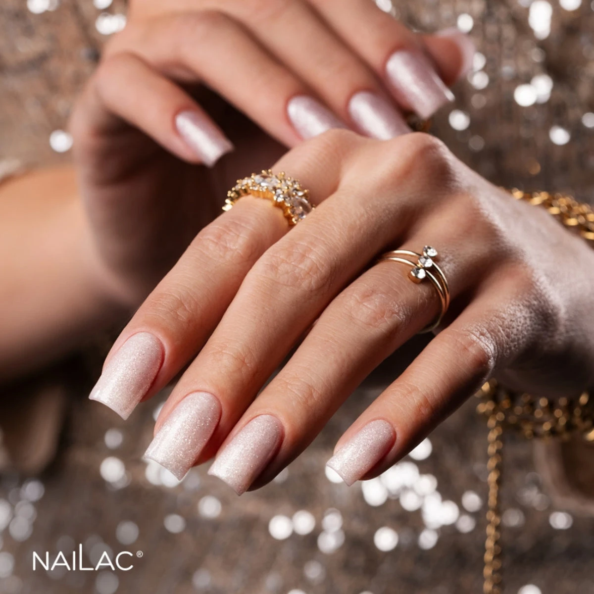 The medium-thick consistency allows you to easily model the base without spilling the cuticles and create a superstructure for flat nails. The shade enriched with particles also replaces hybrid varnish, and the beautifully shiny silver dust adds a jewellery character to the styling.