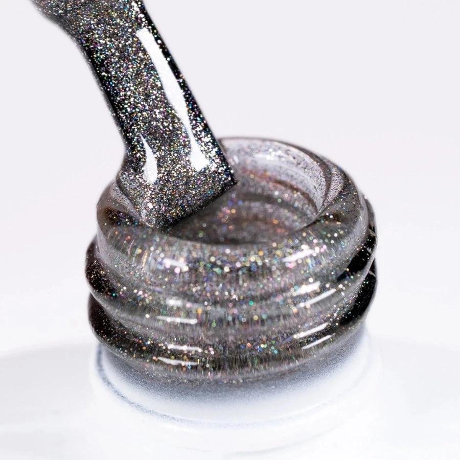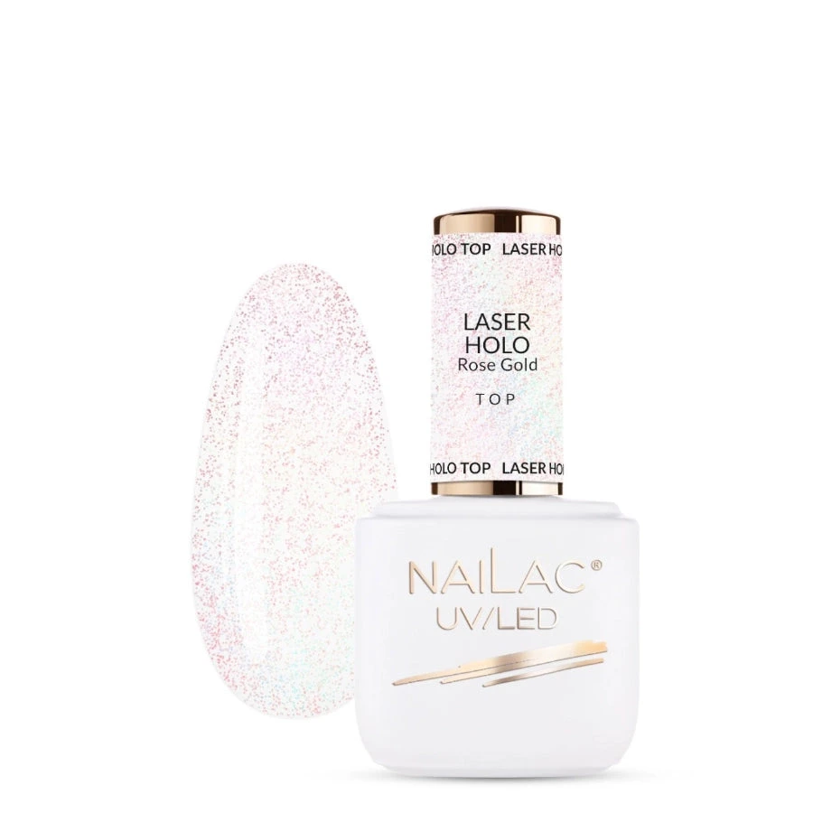 Holo Top Rose Gold laser with finely ground and laser-cut particles in a shade of rose gold, with which you will be ready to set new nail trends. Add a twisted look and cover any base color with a multicolored holo effect – this shiny, three-dimensional finish will delight with every hand movement.