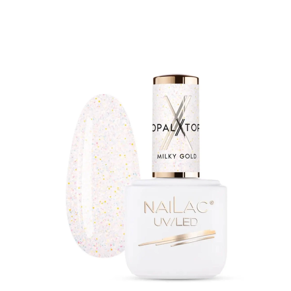 OpalX hybrid top is a three-dimensional hybrid top without washing. The Milky Gold top has a slightly milky base, which, combined with gold particles, will perfectly complement the manicure of all fans of minimalism. It will create an elegant, shiny effect that will charm you with its character in the sunlight. A styling finished with a top will look subtle, but at the same time exude the luxury you deserve!