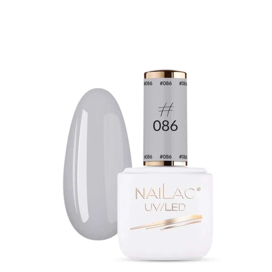 Nailac hybrid varnish in color #086 is a light gray shade of pigeons. Color #086 will be the perfect solution for those of you who cannot afford to go crazy on nails due to the nature of the work. It looks very impressive on the nails and with the addition of silver glitter it will look beautiful in winter stylizations.