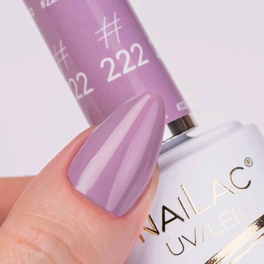 Nailac hybrid polish in colour #222 is a violet shade. If you could create a nude color with shades of purple, #222 would certainly be the most beautiful lilac nude. Subdued, flesh-colored and intriguing, it will be perfect for styling for any occasion.