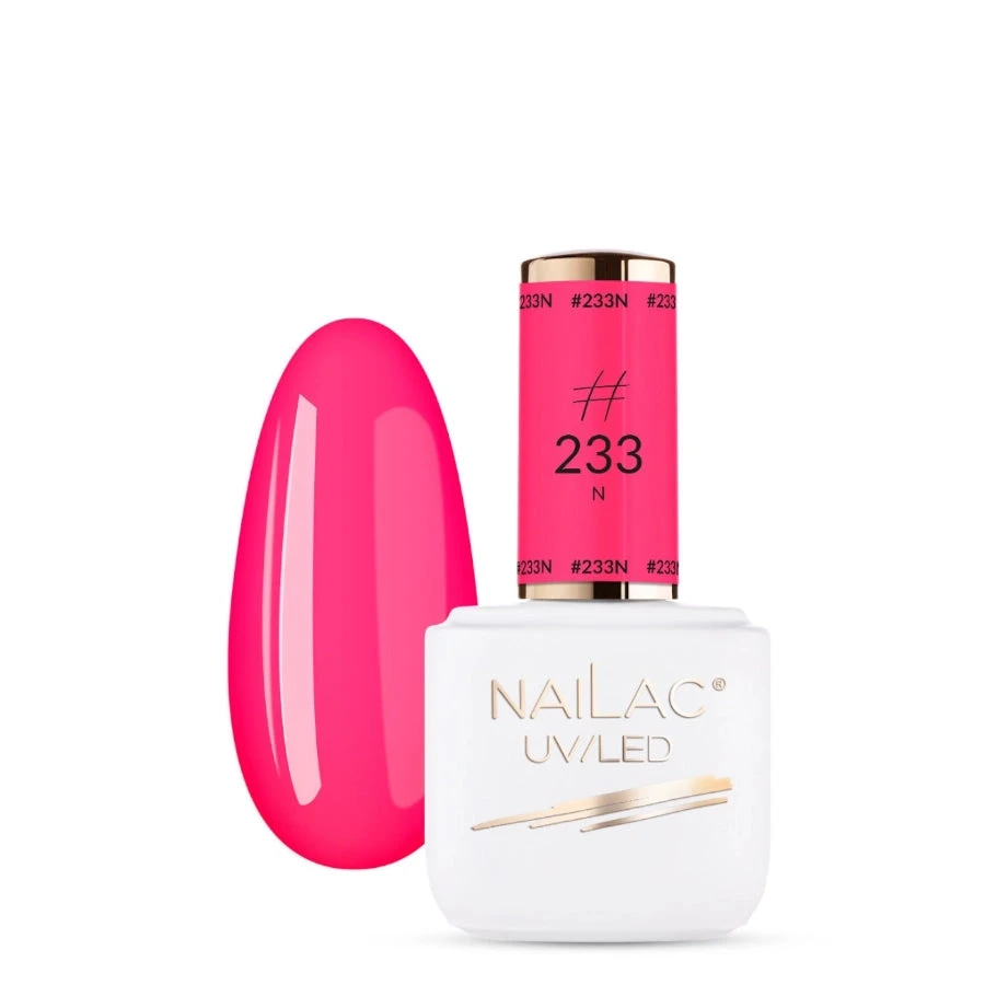 Nailac hybrid polish in colour #233N is a pink neon shade. Colour #233N is a neon strong pink, brushed with a delicate mist of a coral shade. Perfect for holiday trips – joyful and optimistic.