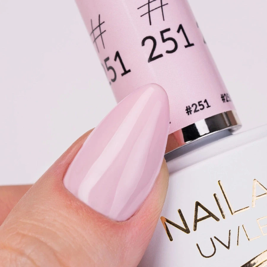 Nailac hybrid polish in colour #251 in pink pastel shade.