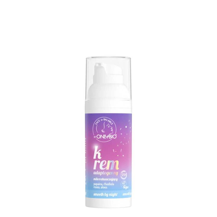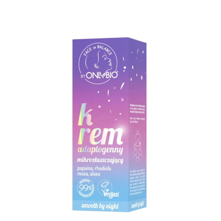 Adaptogenic micro-exfoliating night cream for the care of all skin types. The nighttime action of the cream is supported by its micro-exfoliating properties. Gentle and regular removal of dead epidermal cells enables deep penetration of active substances. As a result, they can work intensively, the effects of which you will quickly notice on your face. The regularly used product reduces the visibility of pores and prevents the formation of new imperfections. The night cream contains 99% ingredients of natural origin.