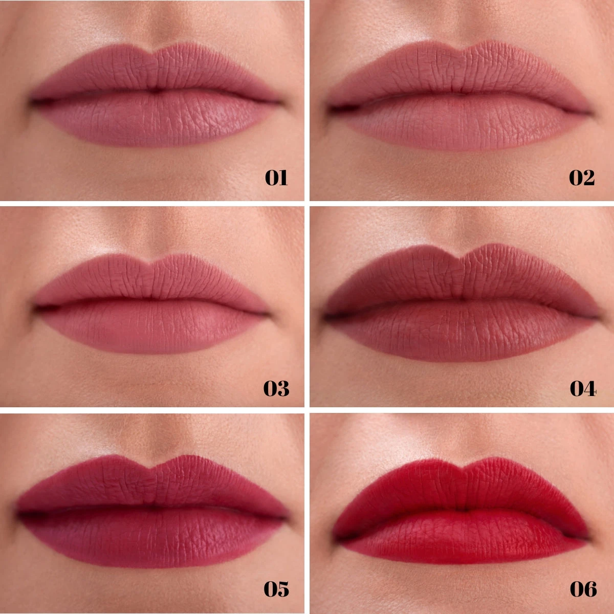 The kiss lips liquid lipstick is a lip makeup cosmetic with a soft matte finish. The light, creamy consistency ensures a comfortable feeling on the lips. Rich pigmentation is responsible for full coverage and intense, expressive colour. A precise applicator ensures easy and aesthetic application. Thanks to the content of vitamin E, it softens and regenerates the lips.