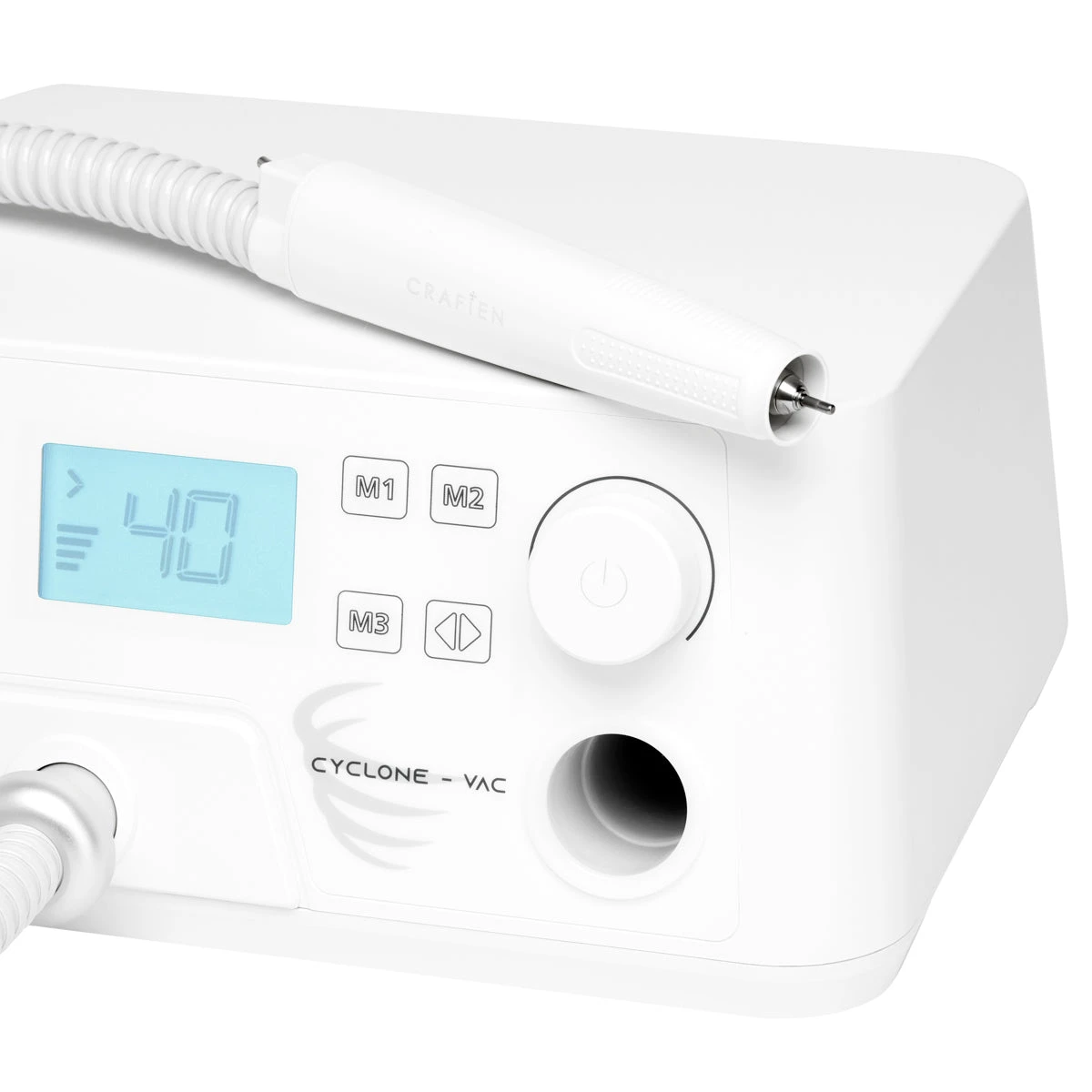Aesthetic, futuristic design in shades of white will perfectly fit into any interior. A special place to put the head down allows for much more comfortable work, and non-slip feet ensure the stability of the device during use. The Saeyang Cyclone-Vac nail drill machine with absorber is covered by a 12-month warranty.