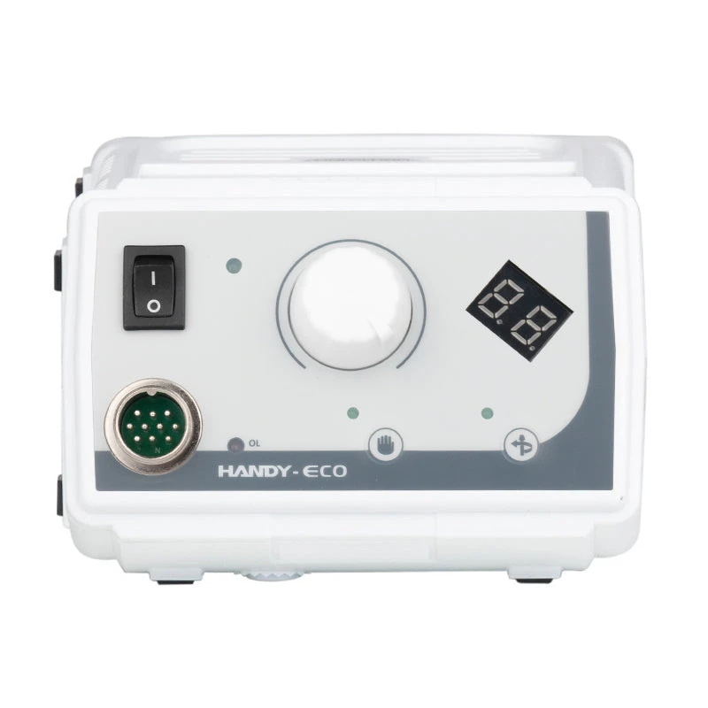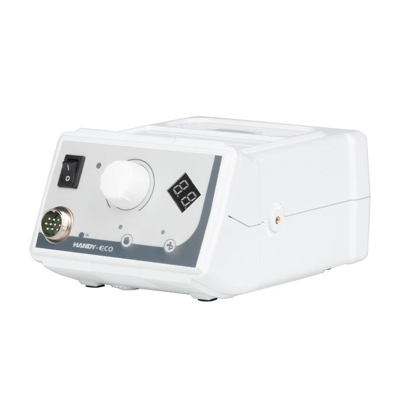 Regulate the speed with the knob and set the intensity of rotation in the range from 0 up to 50 thousand. The digital display will unmistakably show the current speed. The handpiece is extremely powerful, and at the same time free of vibrations.